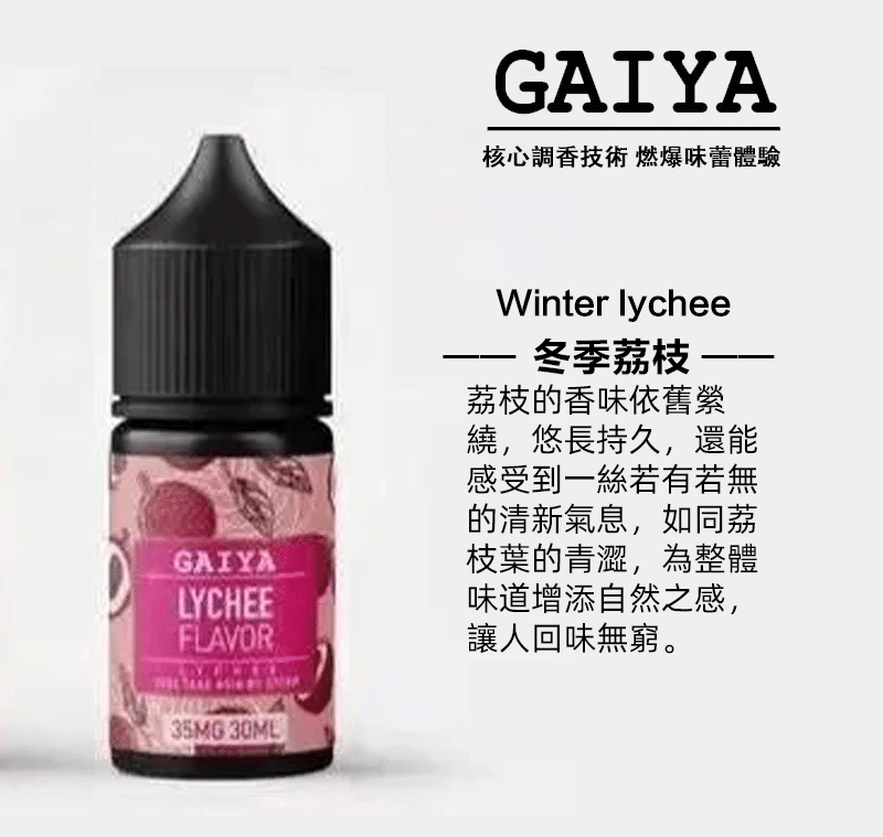 GAIYA蓋亞電子煙油以多元化的風味選擇滿足不同使用者的口感需求,主打「經典系列」與「創新風味系列」。經典系列承襲傳統的菸草與薄荷風味,口感純粹而耐抽;創新風味系列則涵蓋水果、甜點與特調飲品等多種異國風味,帶來更加豐富的味覺層次。所有口味均通過嚴格品質管控,確保健康、安全與穩定的尼古丁輸送效率,為使用者提供持久且滿足的吸食體驗。